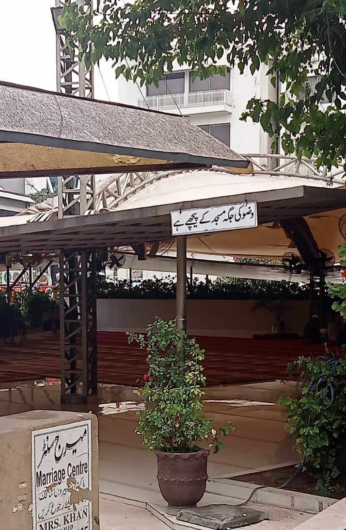 - Prayer space at Jinnah Super Market also used mostly by Muslim men. Photo by Sarah from France Colony (pseudonym).