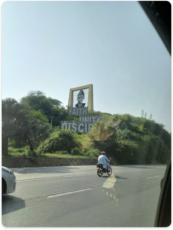 - “Faith Unity Discipline” monument on Islamabad Expressway that quotes Muhammad Ali Jinnah.