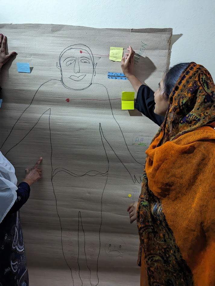 - Bodymap by Amy from France Colony (pseudonym), representing her visceral experiences in our walking tours in Islamabad.