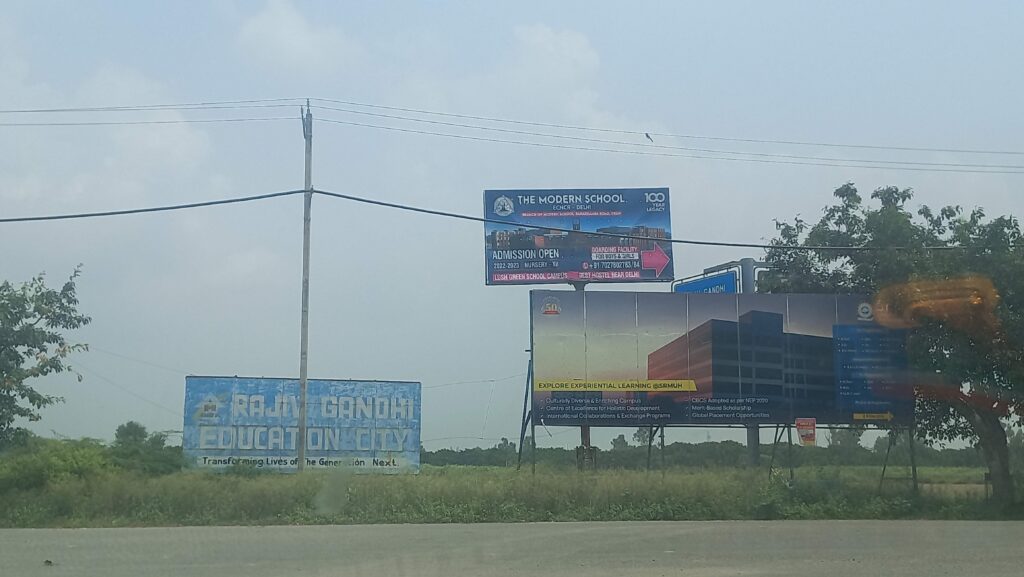 Gurgaon,  the “millennium city” of the National Capital Region, now hosts a campus of the University of Southampton. There is increasing financial interest in university enclaves, contrasting the longstanding lack of infrastructure, funding, and resources faced by other educational institutions in India. In researching this topic, I conducted interviews with various stakeholders to gain insight into their perspectives on the notion of a “world-class city” and education hub in the urban periphery. This short piece offers excerpts of these conversations that highlight the contradictions of these highly corporate universities. These new university spaces stand in contrast with India’s public universities, with their hyper-glossy modern structures, flashy digital posters, swimming pools, massive convention centres, food courts akin to those in shopping complexes, and libraries backed by international private sector banks.